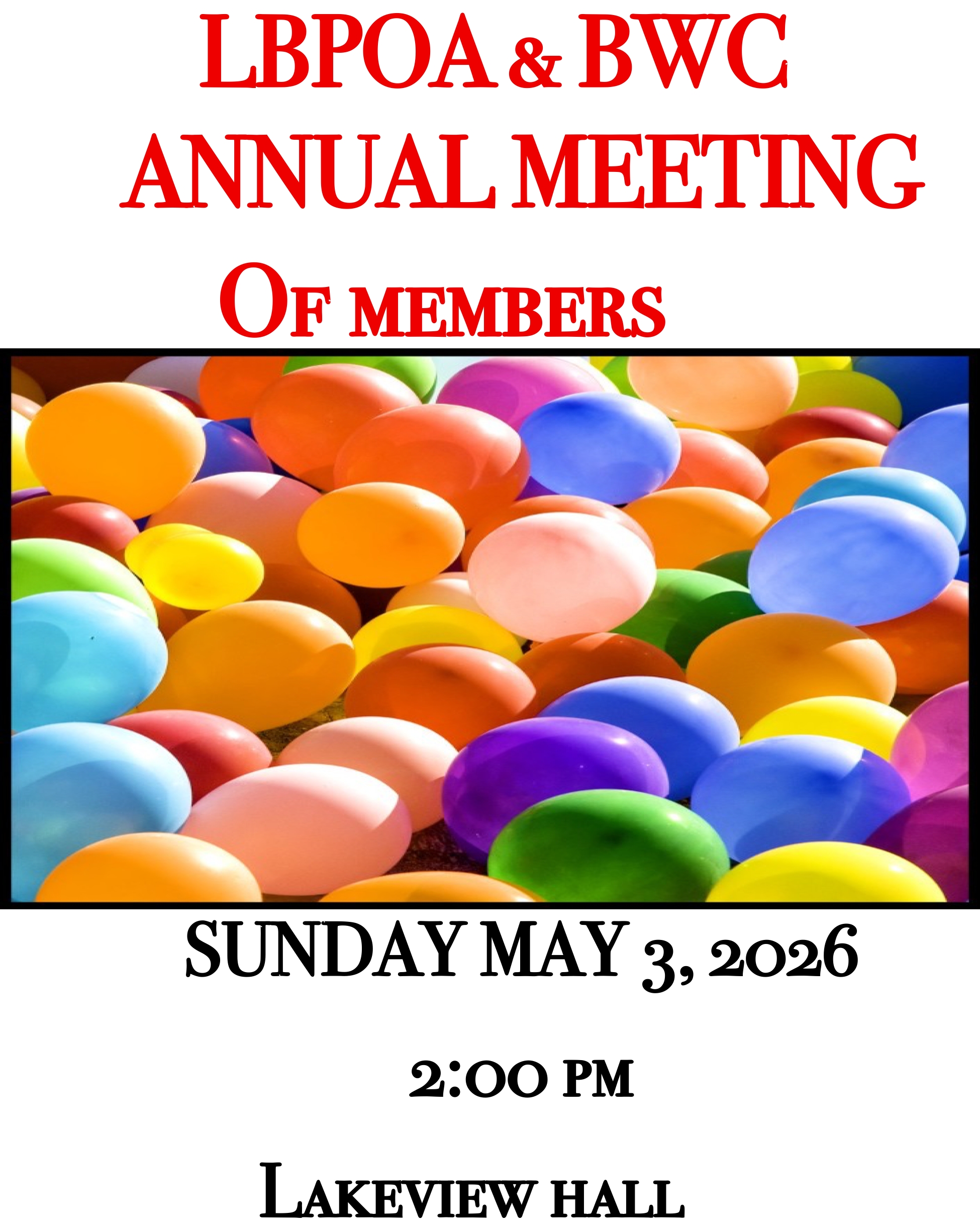 All fees, dues, etc. may be paid at the LBPOA offices in Lakeview Hall. Boat, vehicle and recreational vehicle registrations, are handled by the LBPOA staff. Generally speaking, any business matters that pertain to LBPOA and the Bloomfield Water Company can be handled at the LBPOA office.The lake manager and office staff hold regular office hours.